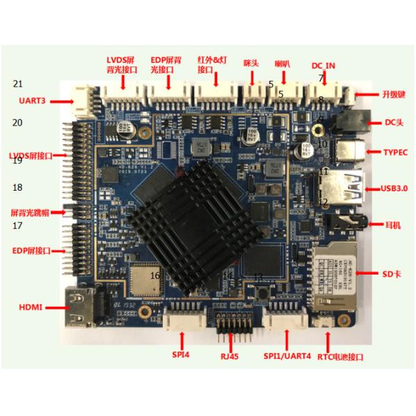 The intelligent industrial all-in-one board adopts the Rockchip RK3399 six-core chip solution, and supports Google Android7.0 and above systems. Powerful computing power. Support H.265 4K video playback. Rich interface, enhanced power management circuit. Suitable for intelligent remote network control: equipment such as industrial, medical, large advertising machines, educational video terminals and other equipment.